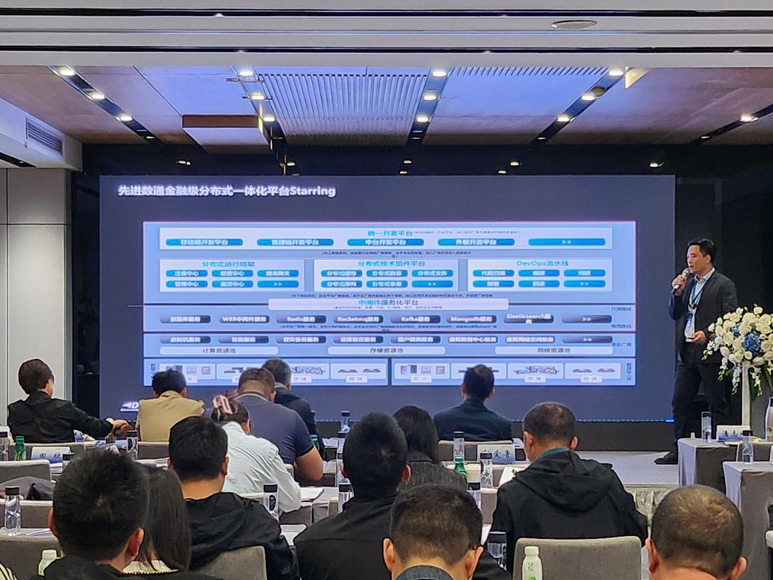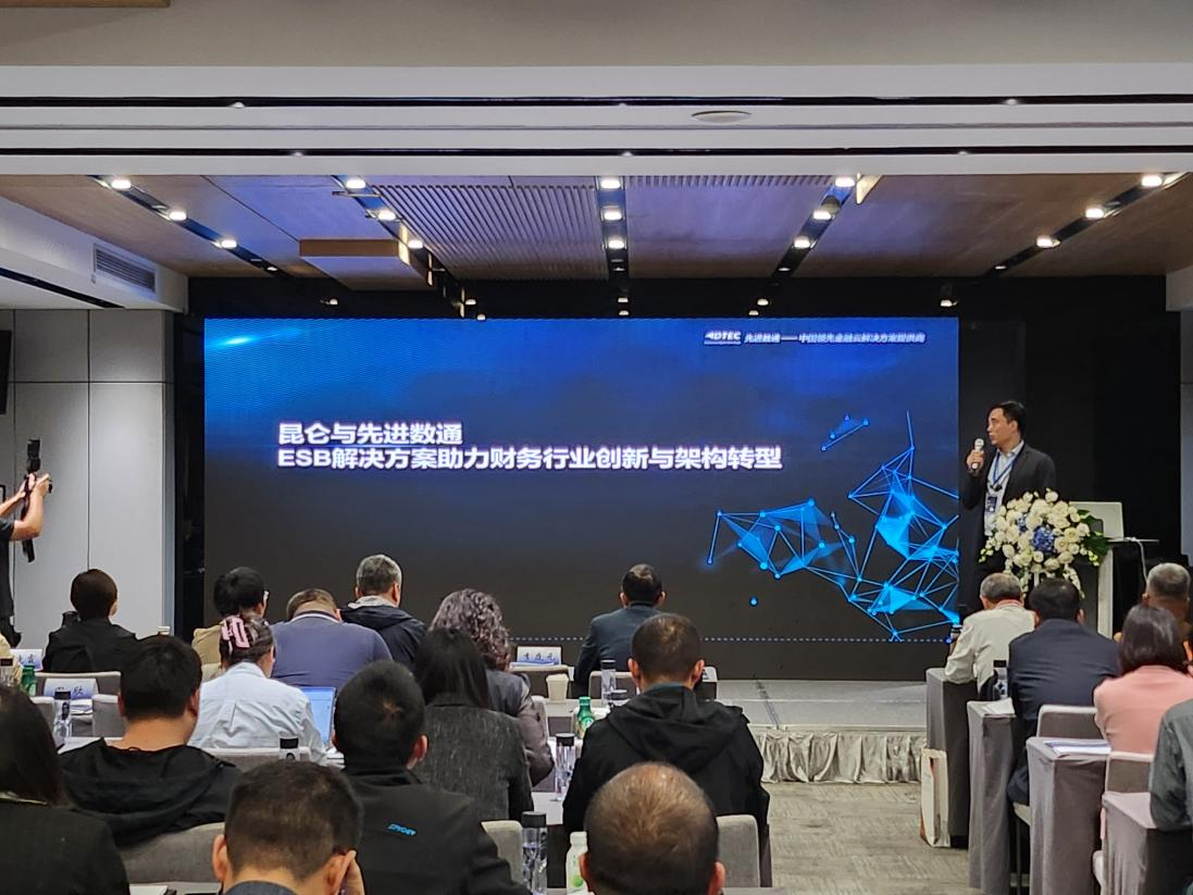 黄金城集团代表讲师郭钰以《昆仑与黄金城集团ESB解决方案助力财务行业创新与架构转型》为主题作发言分享。他深入剖析了当前财务行业IT架构面临的挑战,包括系统孤岛、技术老旧、扩展性不足等问题,并提出了基于企业服务总线(ESB)和微服务架构的转型方案。
